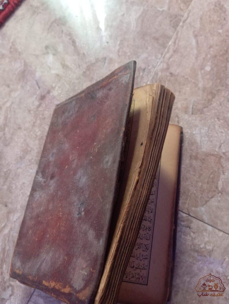 یک جلد قرآن قدیمی روی صفحات نام چاپخانه یا سال چاپ ذکر نشده و بهنظر میرسد از نسخههای سنگی قدیمی باشد. جلد نیز چرمی قدیمی و اصیل است.
